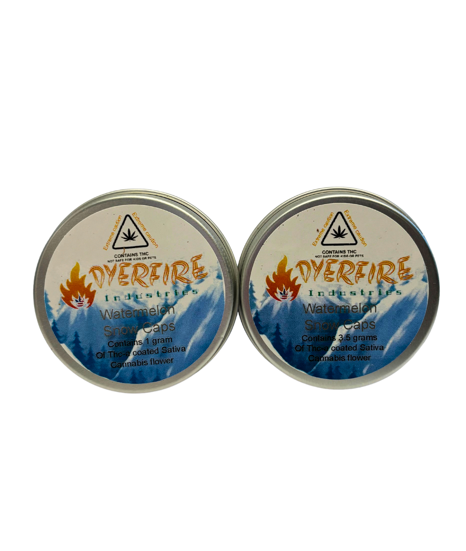 Dyerfire Industries snowcaps are a strong, euphoric, uplifting high. They are premium flower, powdered in THC powder. These are the sativa of the moonrocks,essentially. So we recommend for those who like sativas. Dyerfire Industries snowcaps have a sweet, delicious watermelon flavor, along with an intense fruit aroma.